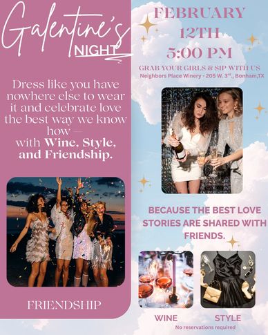 Grab your girls, wear that outfit you’ve been saving, and come sip, laugh, and celebrate Galentine’s with us.